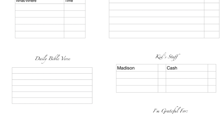 Now that my children are getting older, organization is key. I need to stay on top of everyone’s schedule, appointments, activities. Making sure that my champions are on time, as well as not missing anything, has become rather difficult. Thus, I created my own daily schedule page. It’s something I can print on days where I feel overwhelmed and need to see my daily duties on paper instead of allowing them to be all jumbled up in my head. It gets messy up there and this is a great way to “clean it up”.