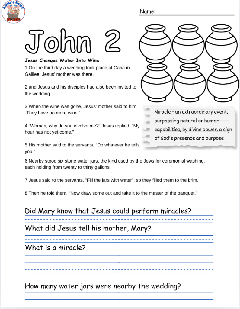 April 1, 2025April 1, 2025 SimplyMySwank The Book of John Workbook (CHAPTER 2) – Grades 4&5 – (free PDF) – A Simply Swank Education The Book of John Workbook – Grades 4&5 – A Simply Swank EducationDownload To God be the glory! Click to share on Pinterest (Opens in new window) Pinterest Like Loading... Related